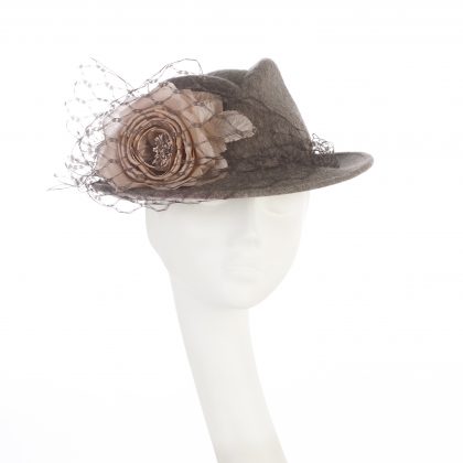 Our trilby hats and cloche hats are handmade in our London atelier. Some are available for immediate purchase, whilst others are made to order. Each style can be made in a wide range of colours. We also offer a bespoke service if you wish to create a completely original design or embellish an existing one.. Feel free to email, call, or visit by appointment to discuss our available styles.